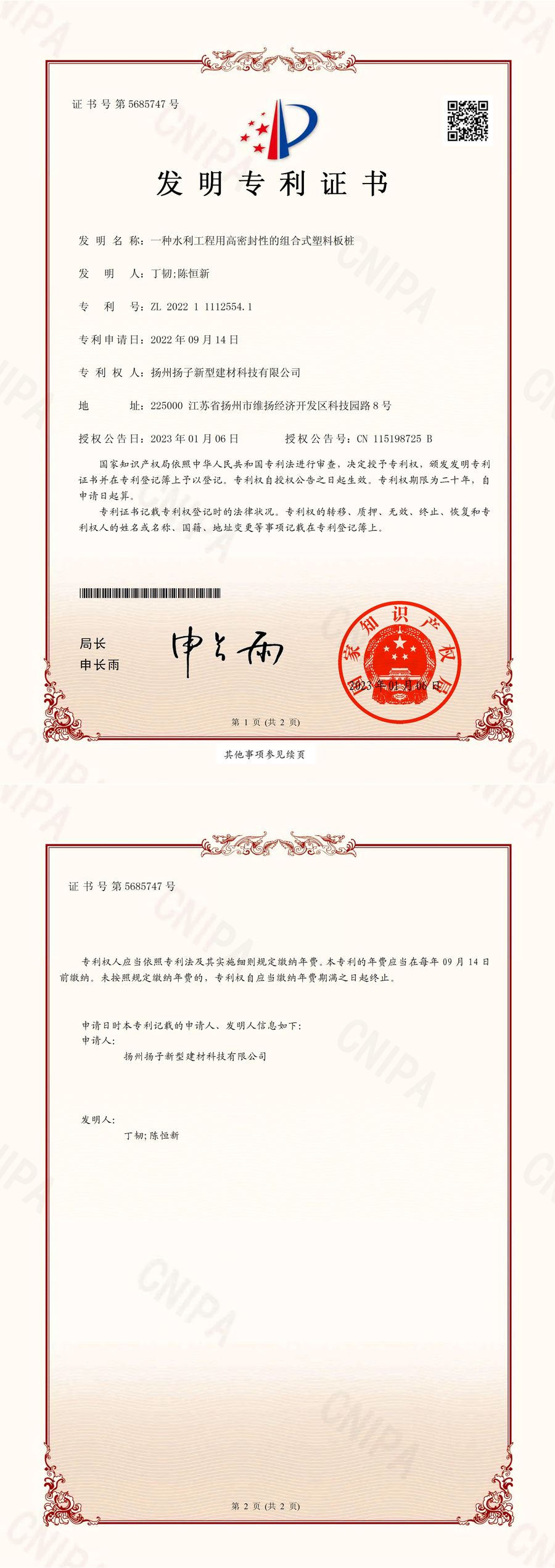 ● 申報了多項發明、實用新型專利并獲得授權。高分子聚合物板樁技